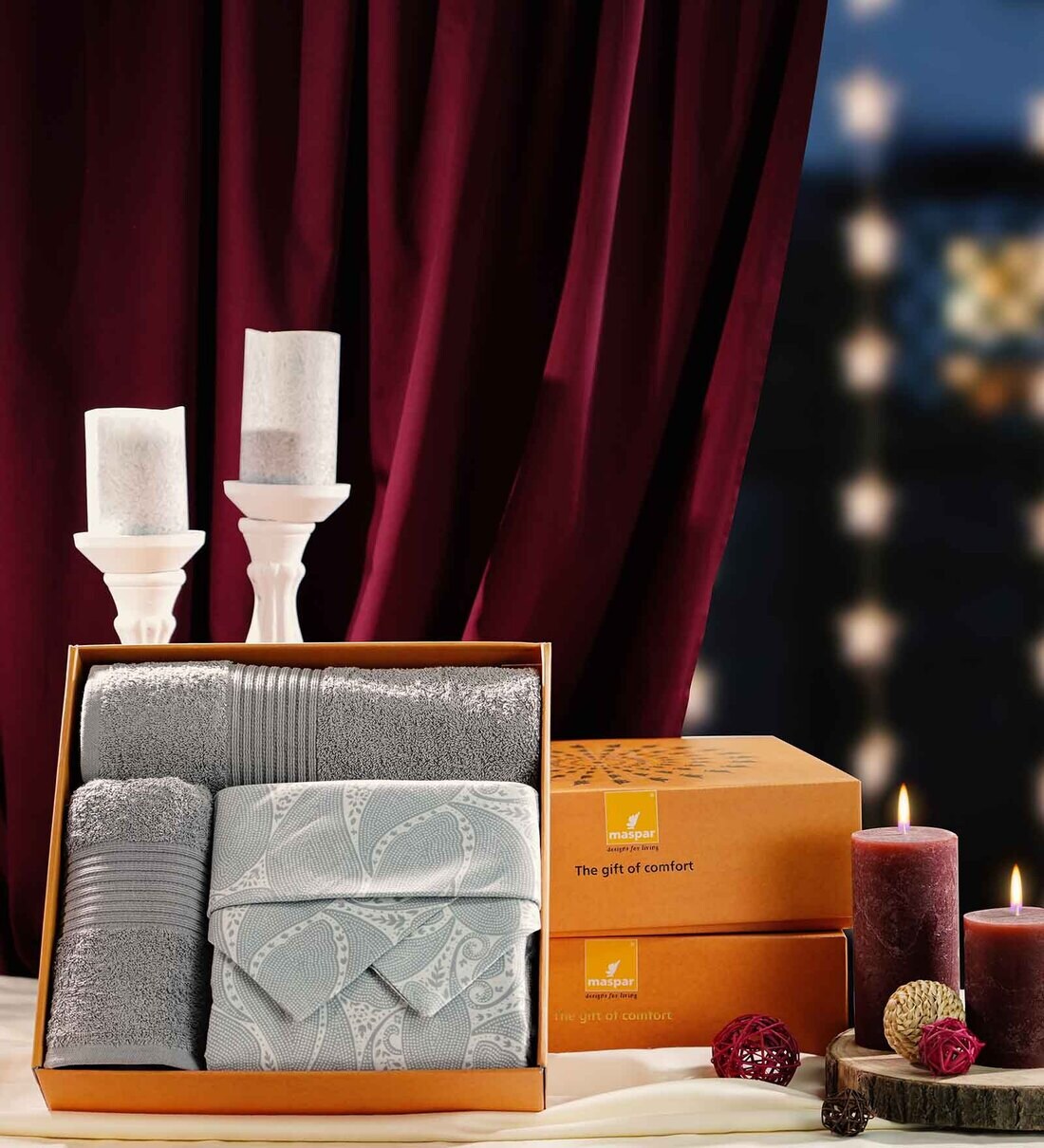1 Bed Sheet,2 Pillow Covers,2 Bath Towels,1 Box
