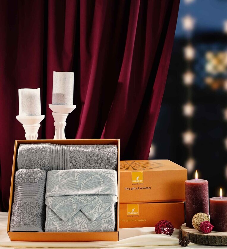 5Pc Bed Bath Set : {1 Bed Sheet (275X275 cm) + 2 Pillow Covers (45X68 cm) +2 Bath Towels (75X150 cm) +1 Box (34.5X34.5X10.5 cm)}