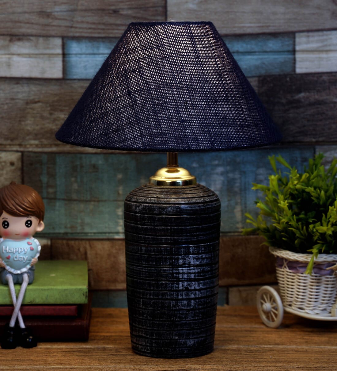 Blue Shade Table Lamp With Terracotta Base