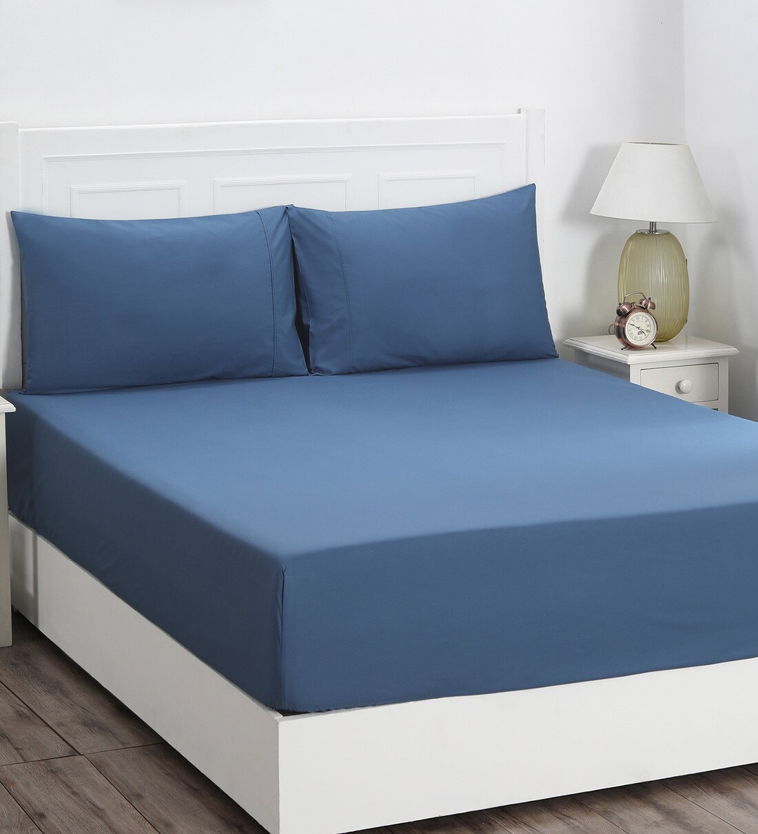 Blue Solid 200 TC Cotton King Sized Bed Sheets with 2 Pillow Covers