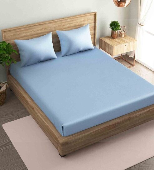 Blue Solid 210 TC Satin Single Bed Sized Bed Sheets With 1 Pillow Cover