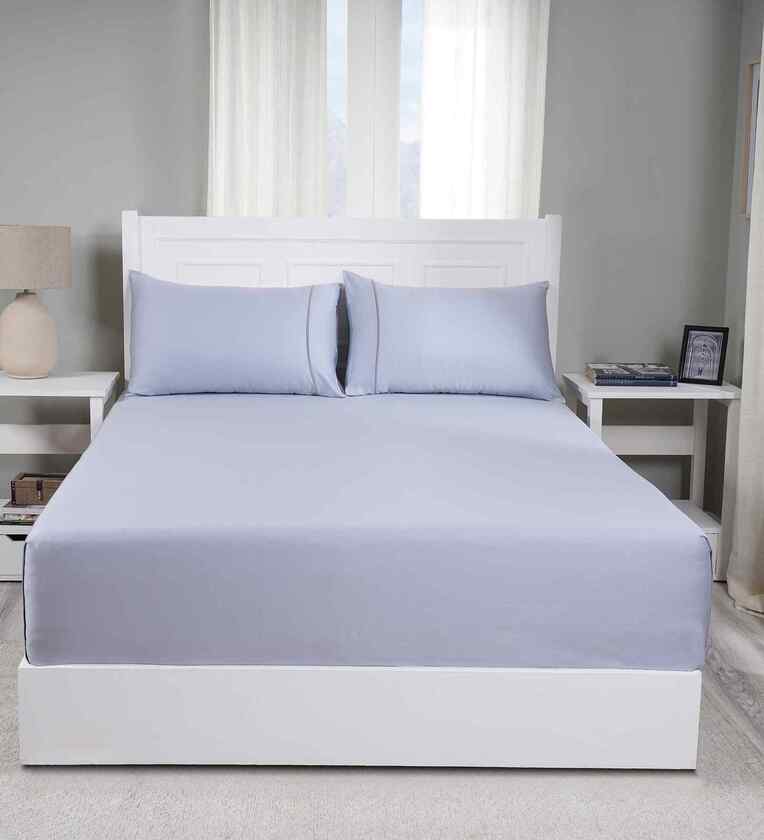 Blue Solid 300 TC Cotton Single Bed Sheet with 1 Pillow Cover 24 Collection