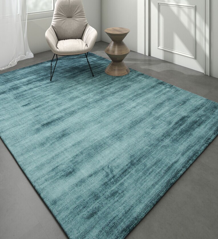 Blue Solid Viscose 5 ft X 8 ft Hand Woven Rectangle Carpet