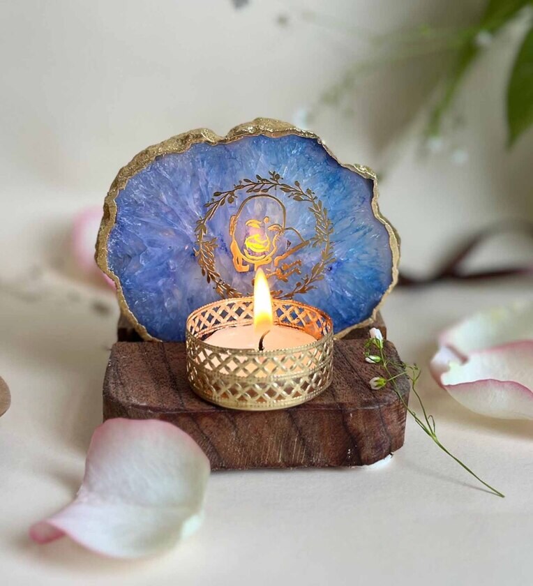 Blue Stone Figurine Tea light Holder