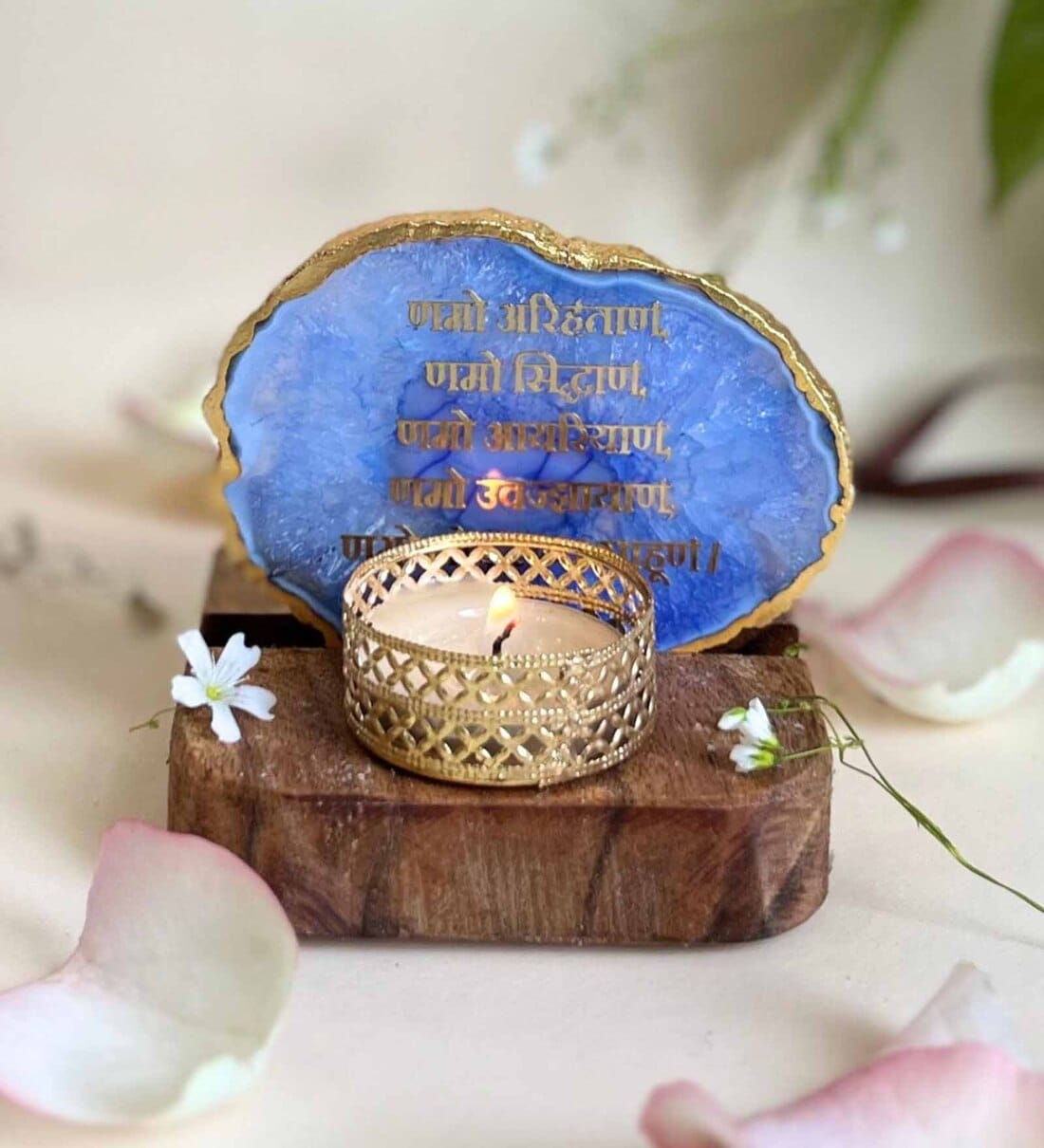 Blue Stone Figurine Tea light Holder