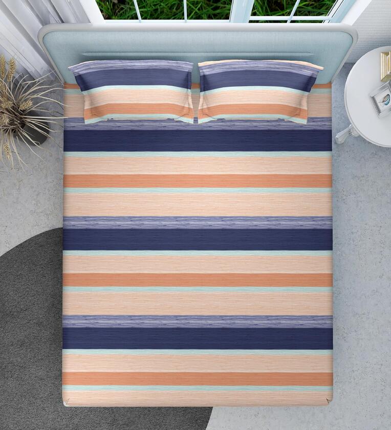 Blue Stripe 144 TC Cotton King Sized Double Bedsheet with 2 Pillow Covers Nautical Stripes Collection