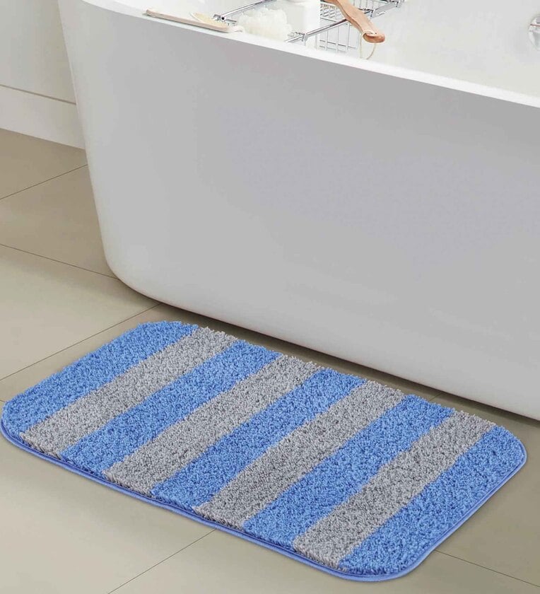 Blue Striped Polyester 28x20 Inches AntiSkid Bath Mat
