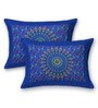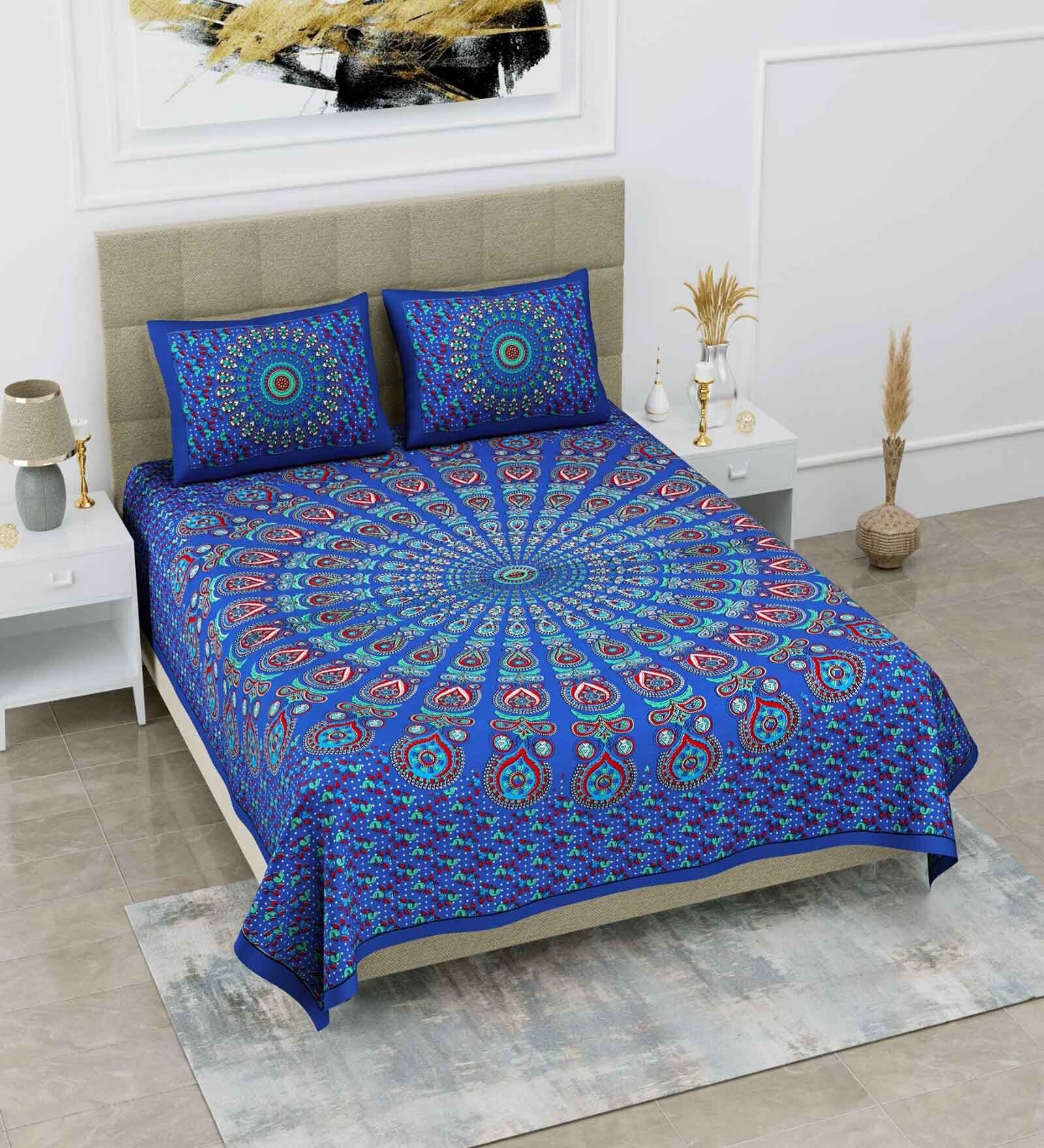 Blue Traditional 120 TC Cotton Queen Sized Bedsheet with 2 Pillow Cover