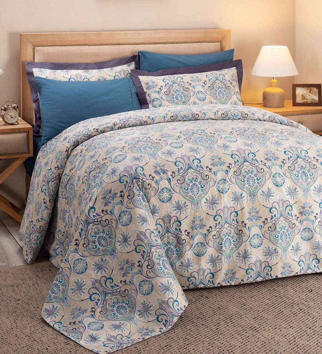 Blue Traditional Cotton Double Bed Duvet Cover With 2 Pillow Covers
