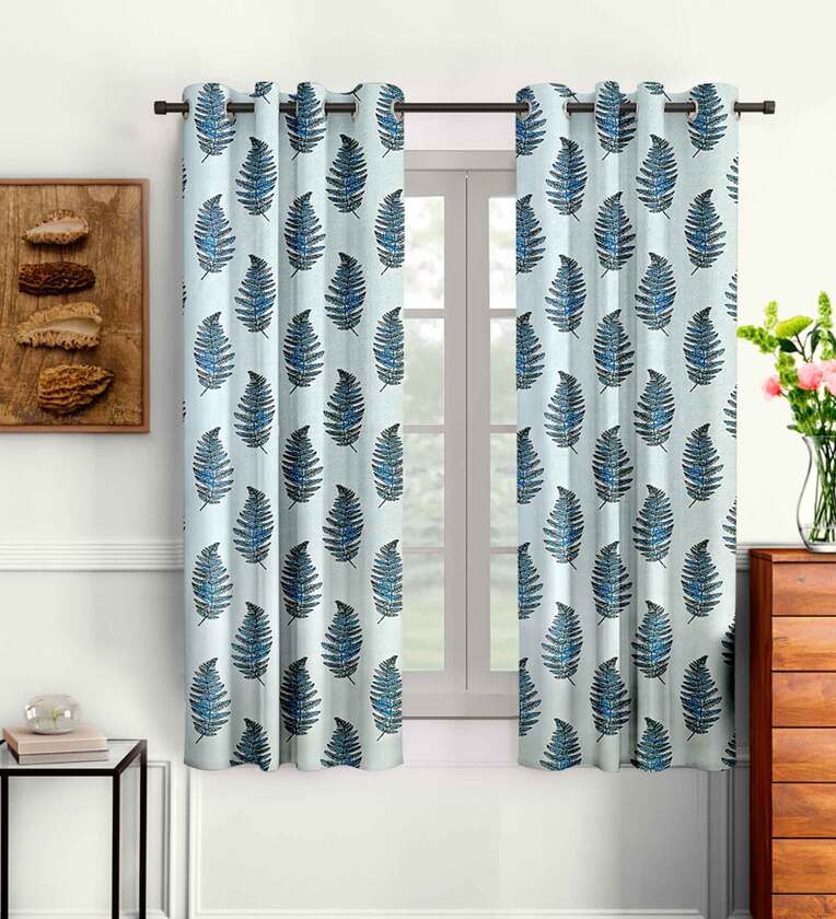 Blue Traditional Polyester 5 Ft Semisheer Eyelet Window Curtains (Set of 2)
