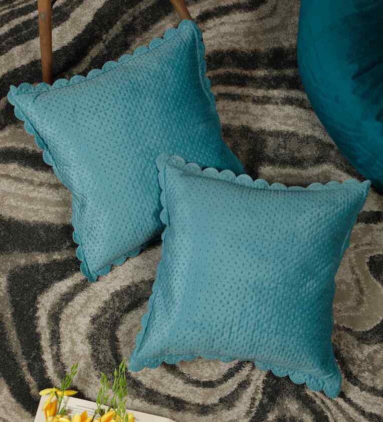 Blue Velvet Abstract 16X16 Inches Cushion Covers (Pack of 2)