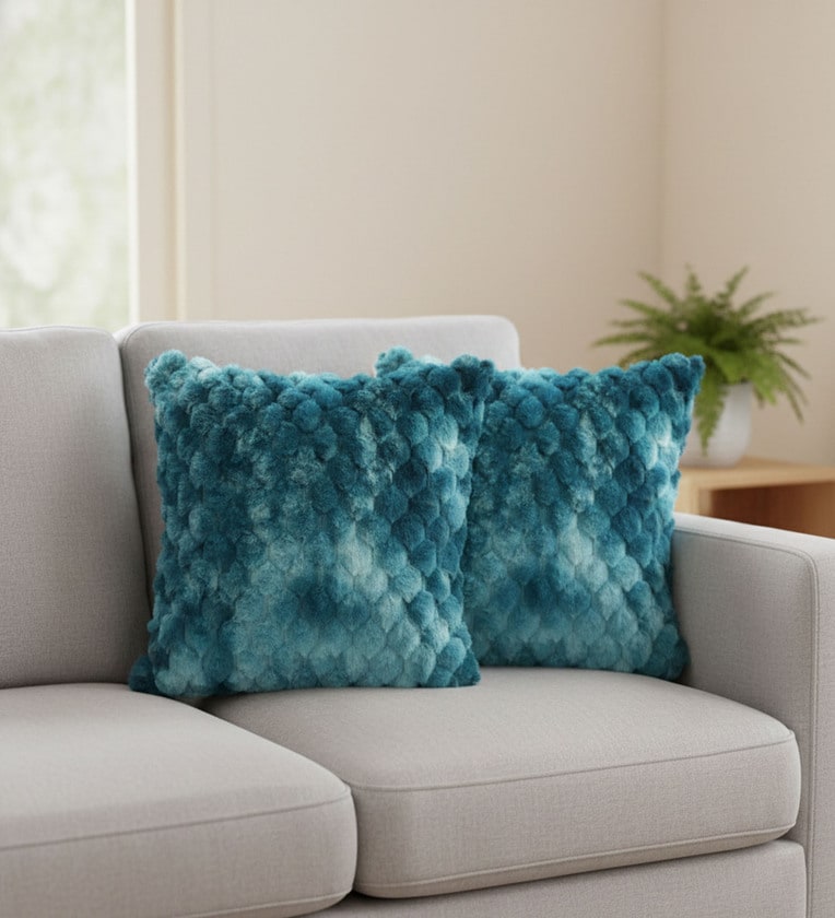 Blue Velvet Rabit Hair Feel 16X16 Inches 2Pcs Cushion Covers