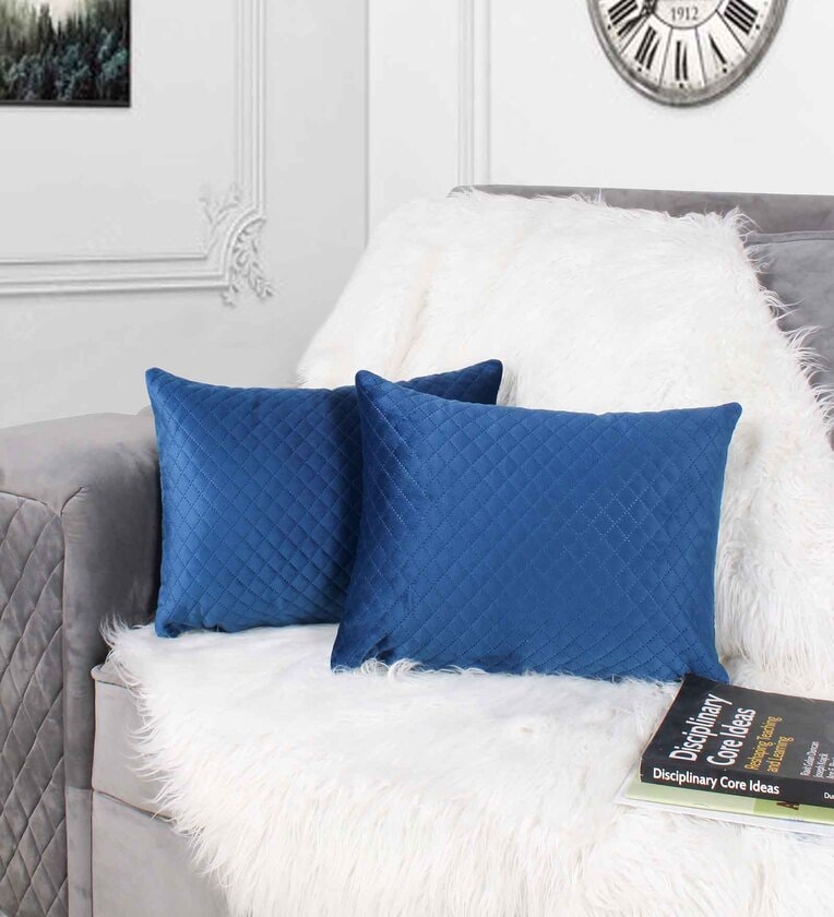 Blue Velvet Solids 18x12 inches Cushion Covers (Pack of 2)