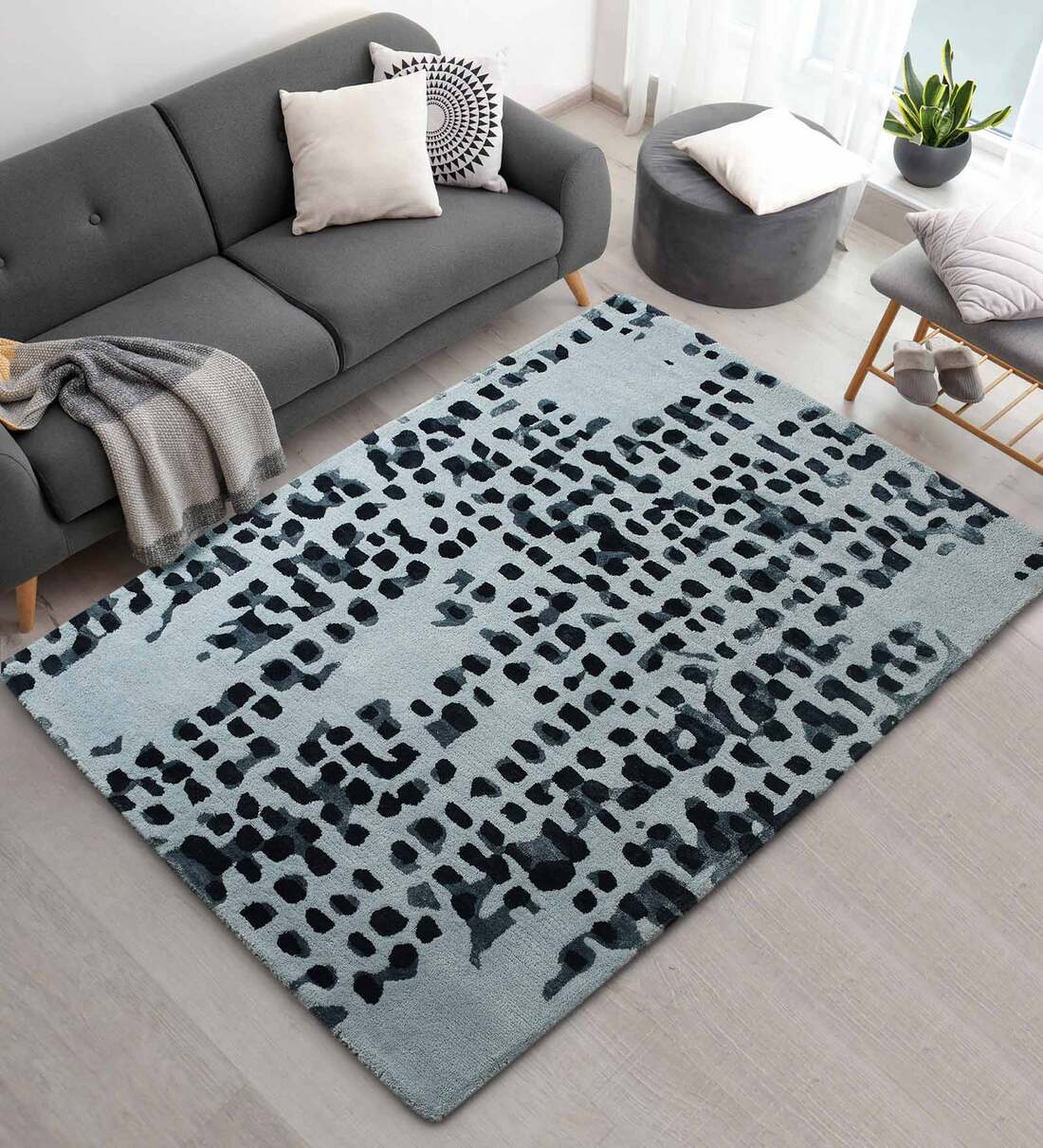 Buy Blue Wool and Viscose Abstract 6 x 8 Feet Hand Tufted Carpet