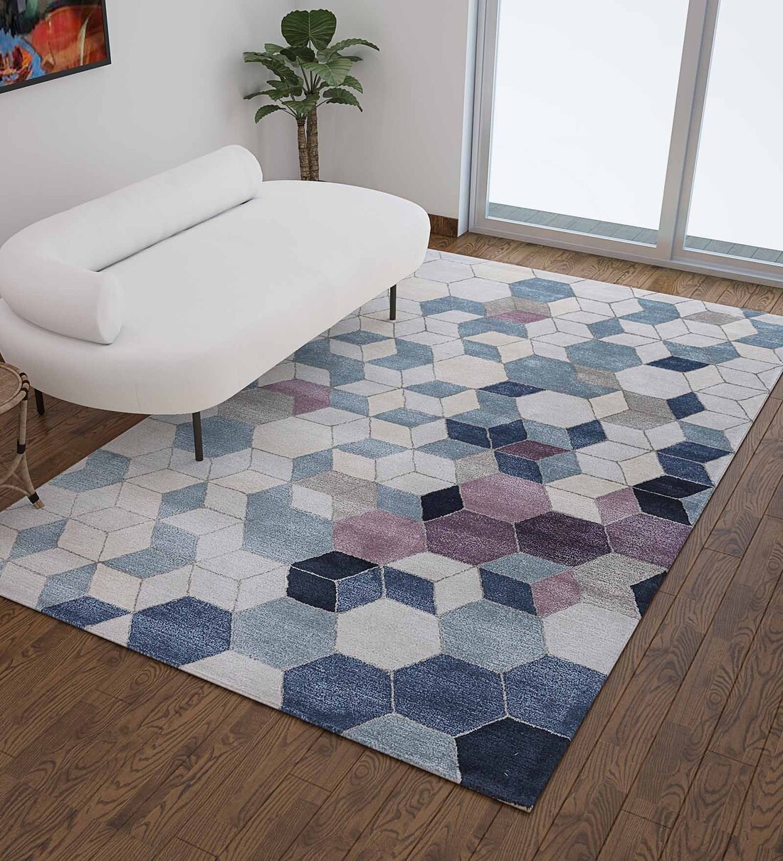 Blue Wool And Viscose Geometrical 5 x 8 Feet Hand Tufted Carpet