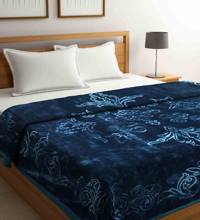 Blue Wool Floral 1000 GSM Heavy Winter Double Bed Blanket