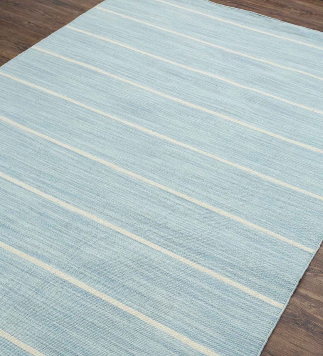 Blue Striped Wool 8 ft x 10 ft Flat Weave Carpet
