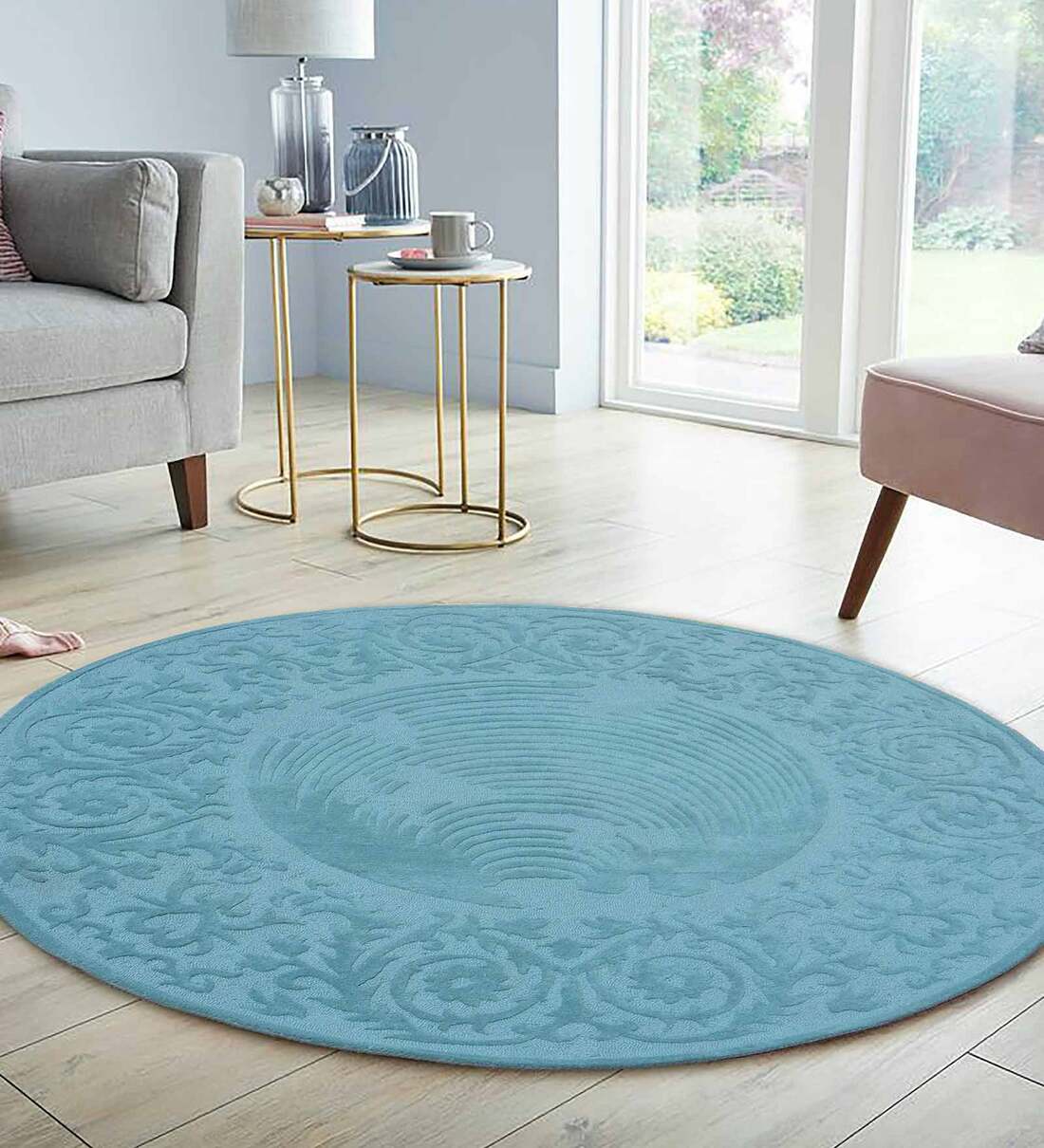 Blue Wool Traditional 6 ft x 6 ft Hand Tufted Carpet