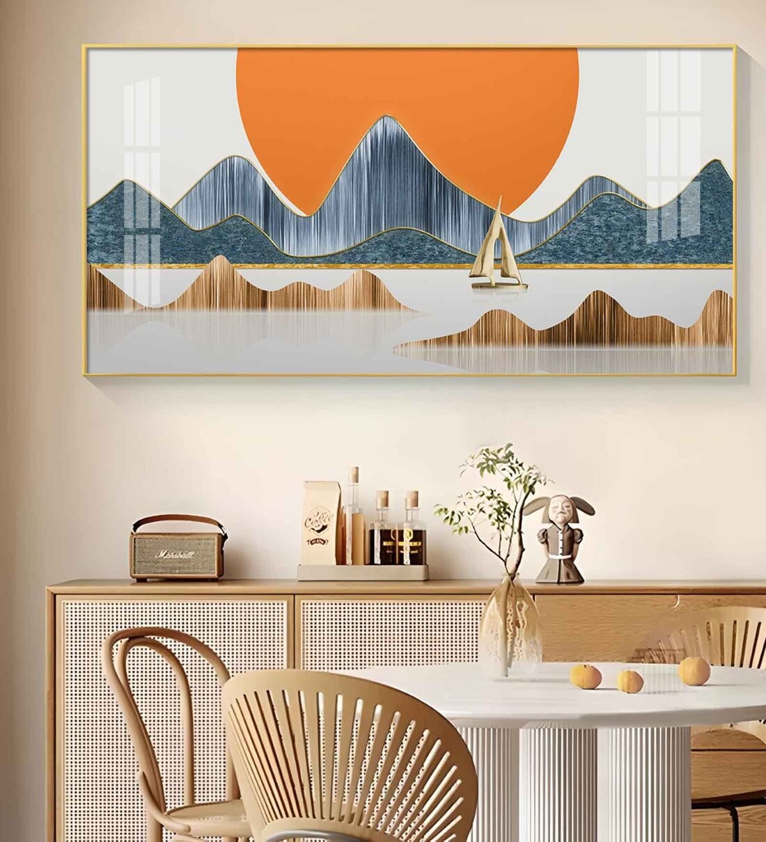 Boat And Sunset Scenery Glass Finish Horizontal Wall Art