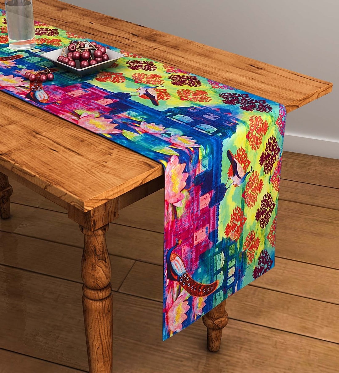 Boho Floral (47x12) Blue & Pink Cotton Table Runner