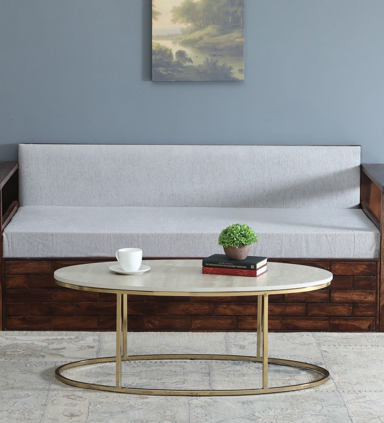 Bonita Metal Coffee Table In White Colour With Travertine Top