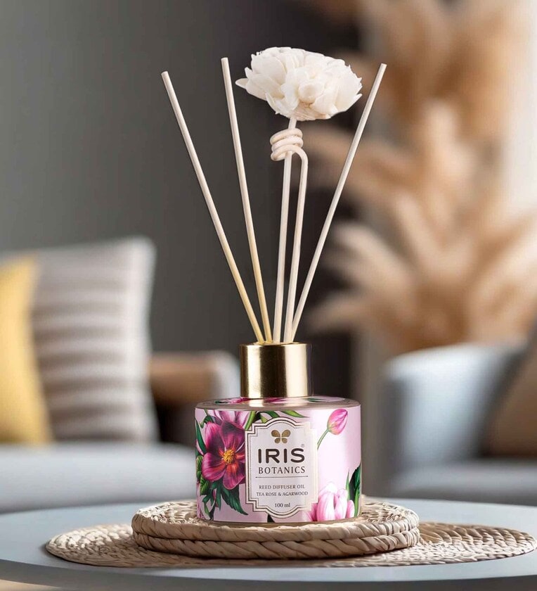 Introducing the Iris Botanics Glass Bottle Reed Diffuser Set - a fusion of aesthetics and functionality. Encased in a chic glass bottle adorned with an elegant gold cap, this 100ml diffuser comes with a versatile stopper for easy storing when not in use. The set includes both normal and spiral reeds, as well as floral reeds, providing a customizable and stylish touch to your space. Immerse yourself in the enchanting fragrances as the reeds gently disperse the fragrance, creating a sophisticated and inviting ambiance. Elevate your surroundings with the Iris Botanics Reed Diffuser Set, where design meets the art of fragrance.