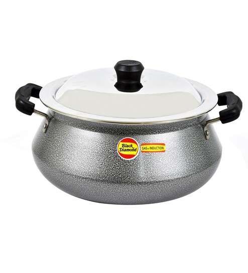 Brant 6 Ltrs Induction Friendly Grey & Black Aluminium Cooking Pot
