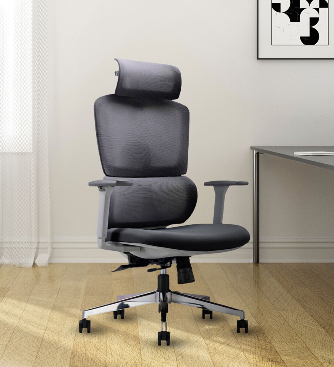 Features: Mesh Seat , 2-Way Adjustable Headrest , Synchro Multi Lock Mechanism With Seat Slider , 3 Dimensional Armrest