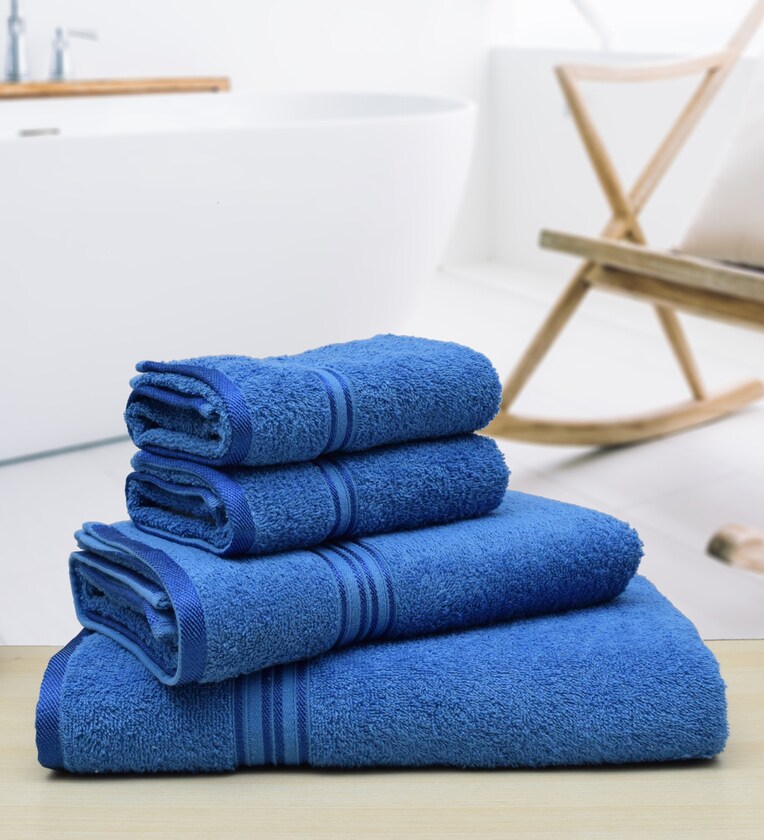 Bright Blue Solid 500 GSM Cotton 4 Pieces Towel Set