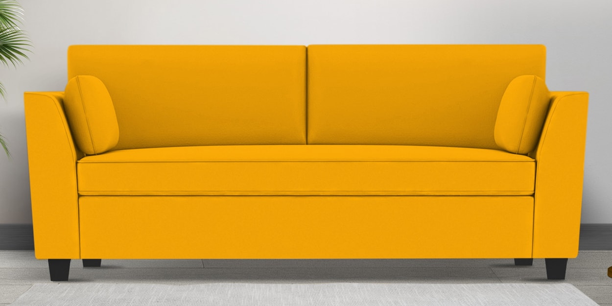 Bristo Velvet 3 Seater Sofa in Saffron Yellow Colour with Storage