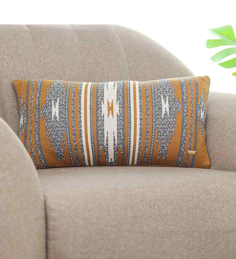 Enhance your decor with Ikkat Jacquard Knitted Cushion Cover. This beautifully made Jacquard cushion cover (No Fill Inside) is expertly knitted in 100% Quality Cotton.
