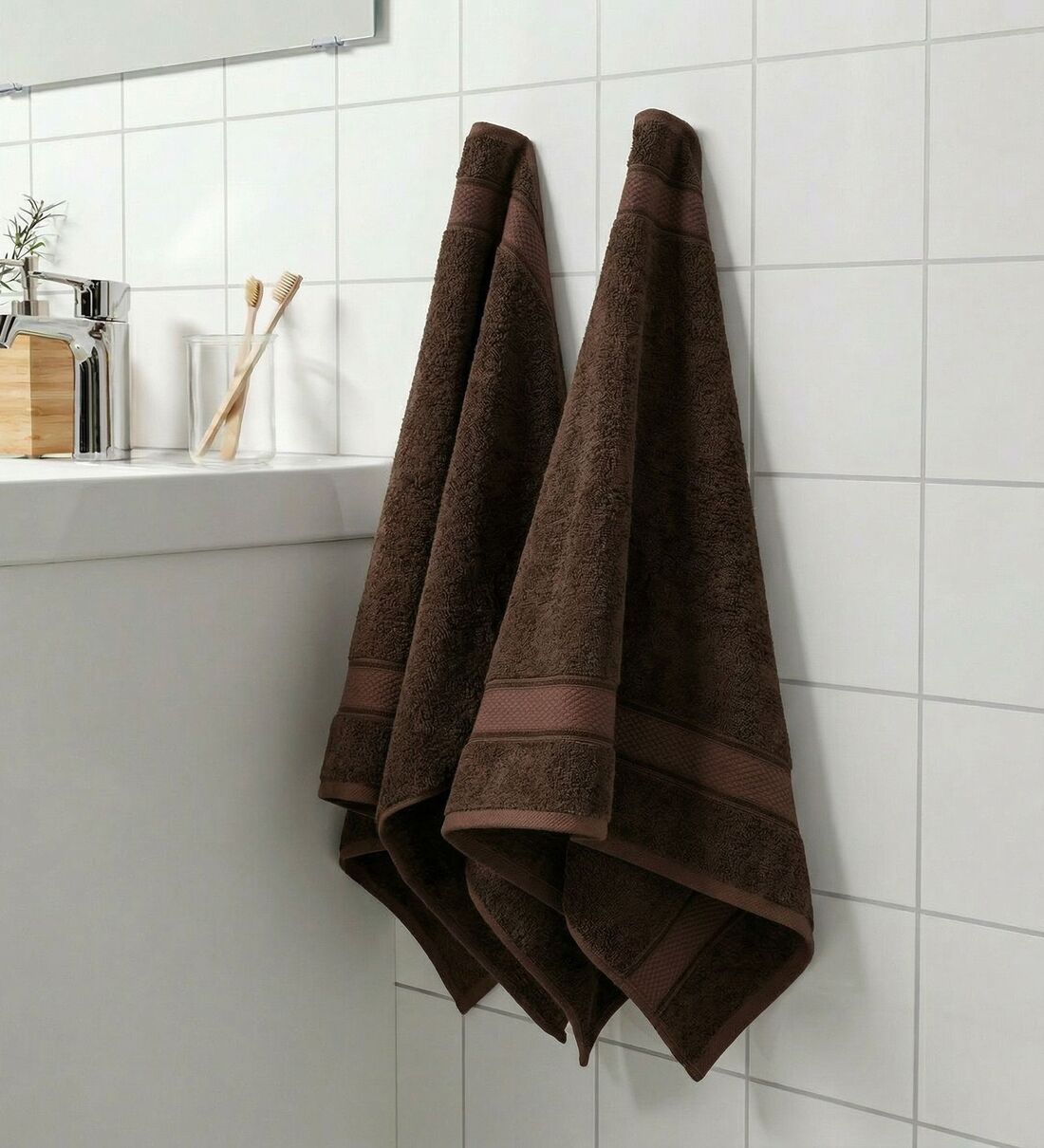 Monte Carlo Luxury Bamboo Cotton Hand Towel Eco Bamboo 2 Set Pvc Pack | (40 X 60 Cm) | 600 GSM | Deep Taupe