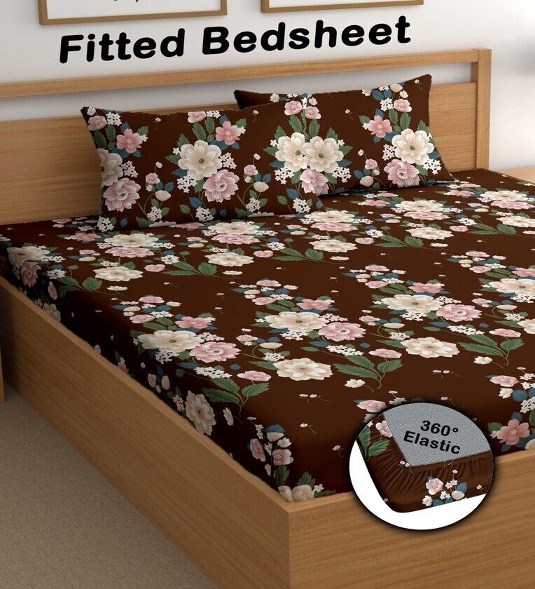 CG Homes Cotton Double Fitted 180 TC Printed Bedsheet