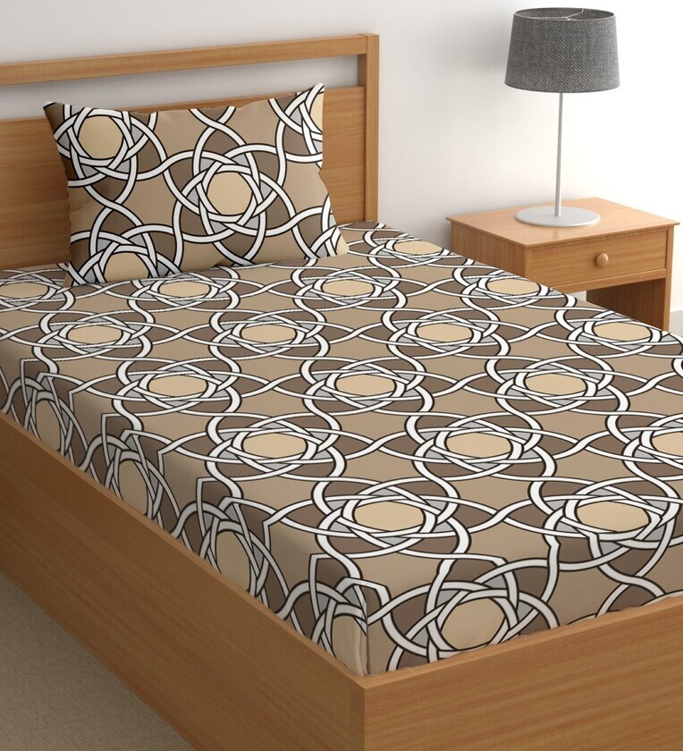 Brown 200 TC Abstract Cotton Single Bedsheet Pillow covers