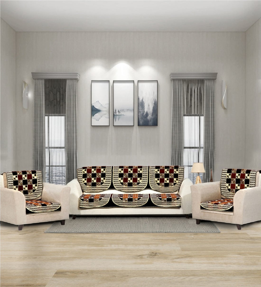 Brown 5 Seater Checkered 10Pcs Sofa Covers