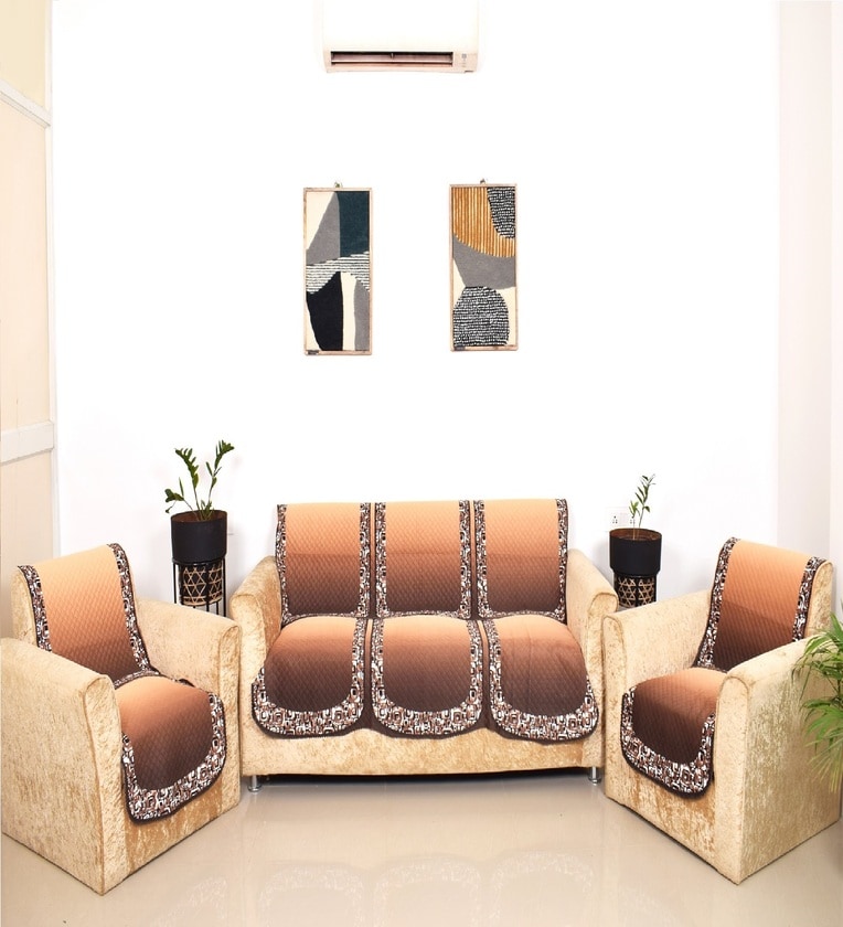 Brown 5 Seater Floral 10Pcs Sofa Covers