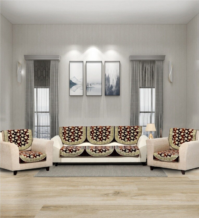 Brown 5 Seater Polka Dot 10Pcs Sofa Covers