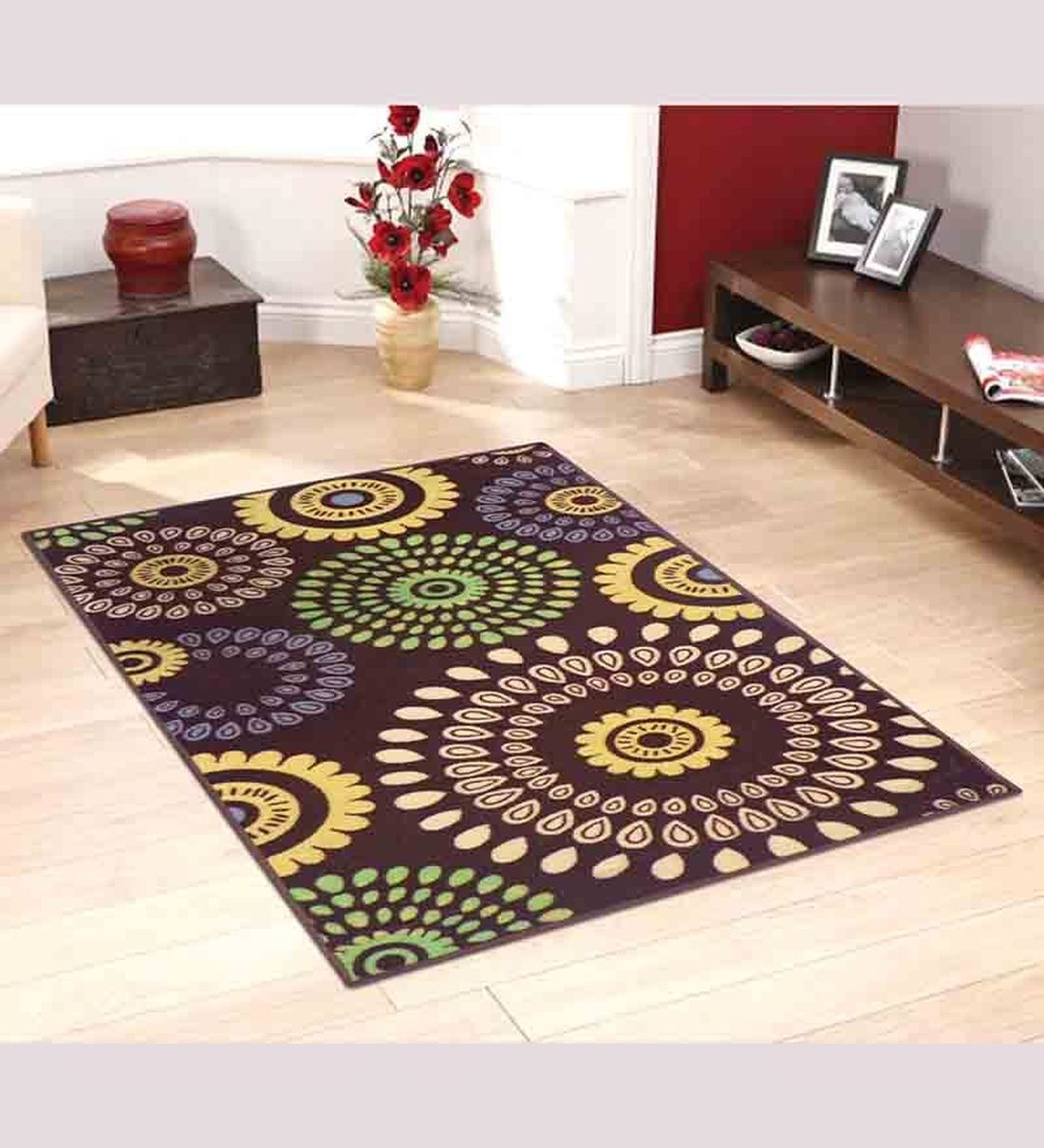 Brown Abstract Polyester 3 ft x 5 ft Machine Made Carpet