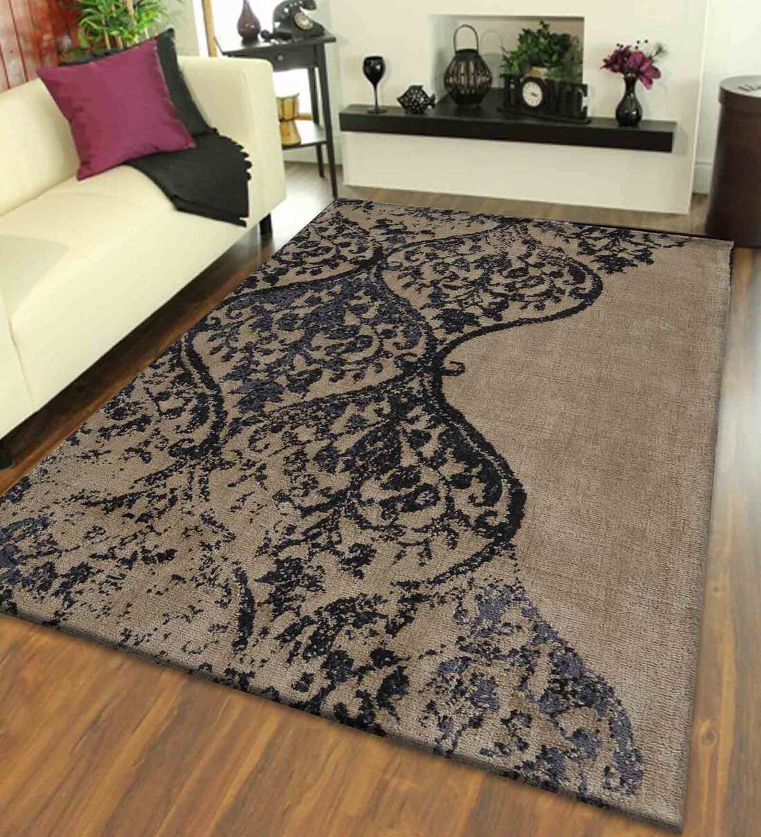 Brown Abstract Polyester 6 ft x 9 ft Hand Tufted Carpet
