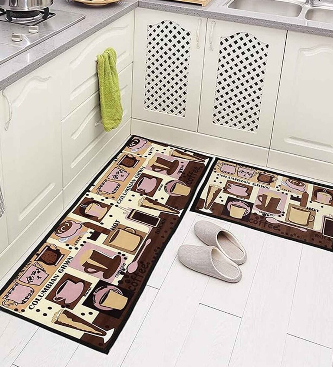 Brown Abstract Velvet Antiskid Machine Made Floor Runner and Door Mat Combo