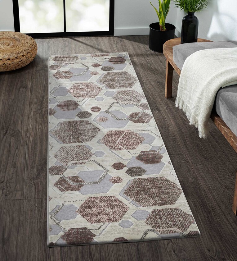 Brown and Grey Geometric 2x3 Feet Machine Made Runner