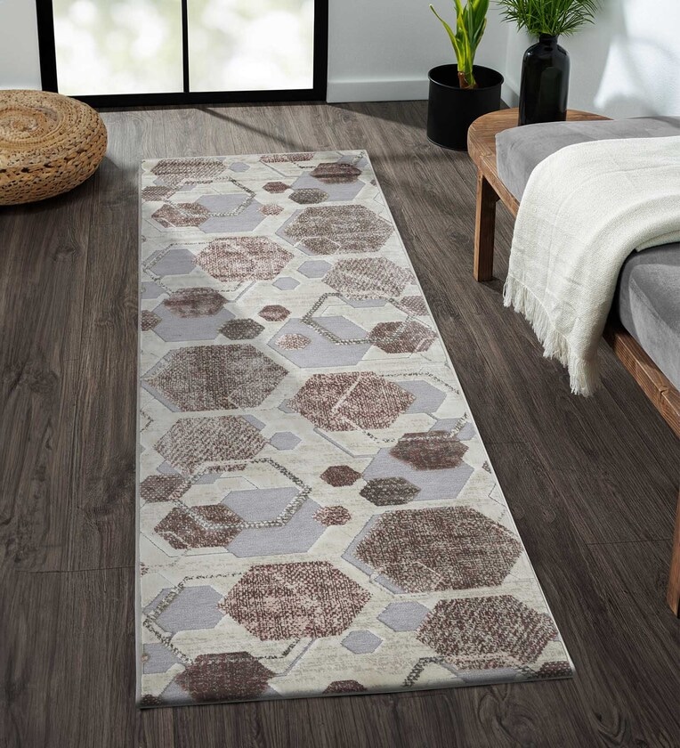 Brown and Grey Geometric 2x7 Feet Machine Made Runner