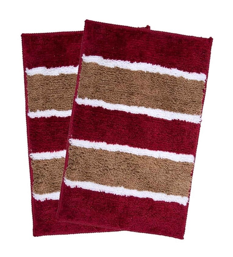 Brown and Maroon Striped Polyester Blend 21x13 Inches Antiskid Bath Mat (2Pcs)