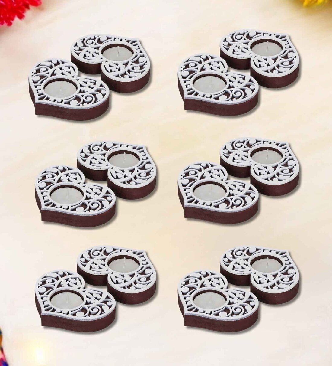Brown and White Wooden Tealight Candle Holder (12 Pcs)