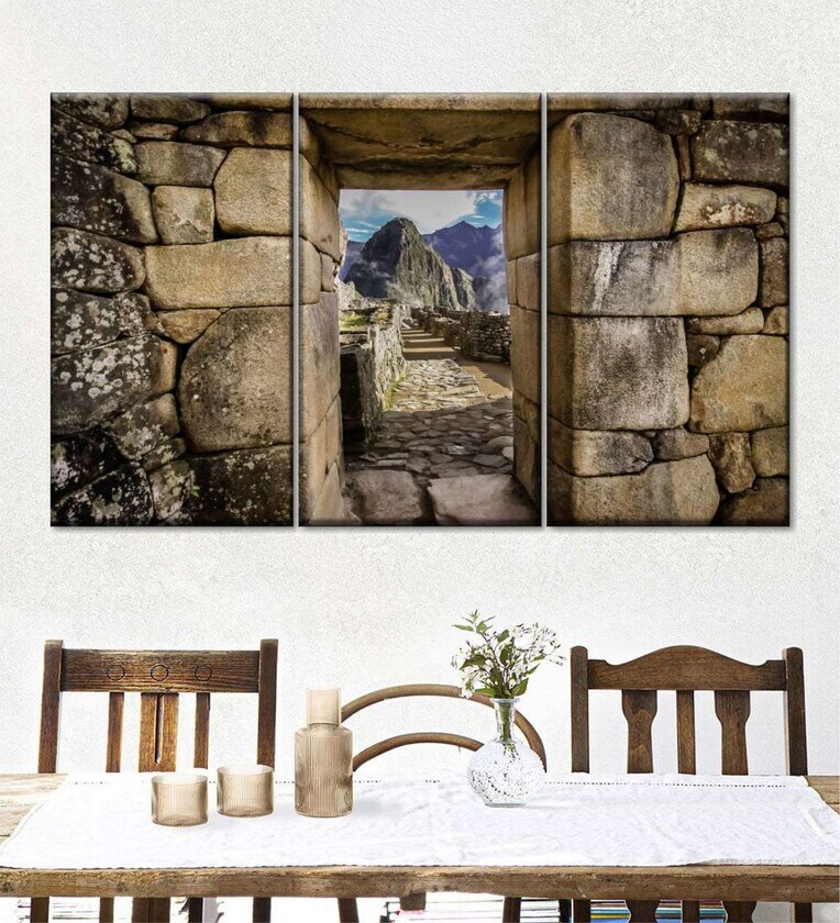 Brown Blue Machu Picchu Doorway Painting Wall Art Panels ( Set Of 3)