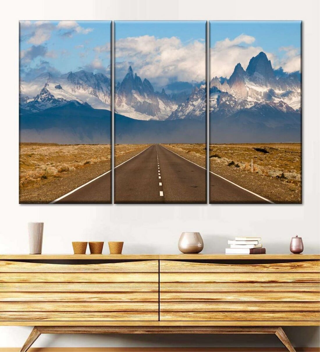 POSTERS AND TRUSS Brown Blue 3 Pieces Painting Wall Art