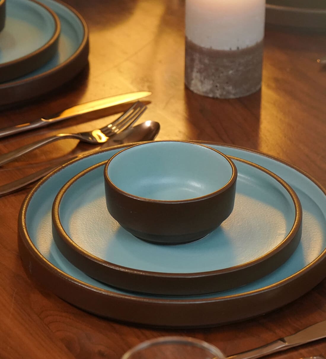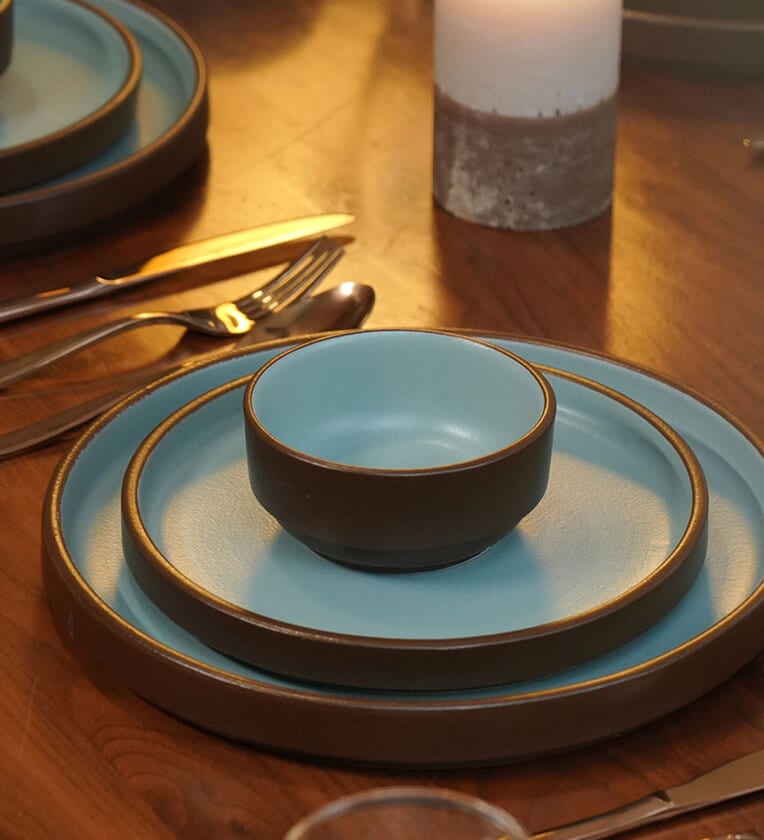 (Set Of 6) Brown & Blue Stoneware Quarter Plates