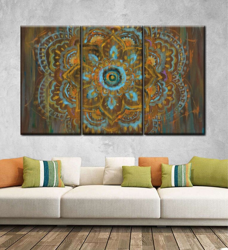 Brown Bombay Bohemian Panels Canvas Wall Art Panels ( Set Of 3)