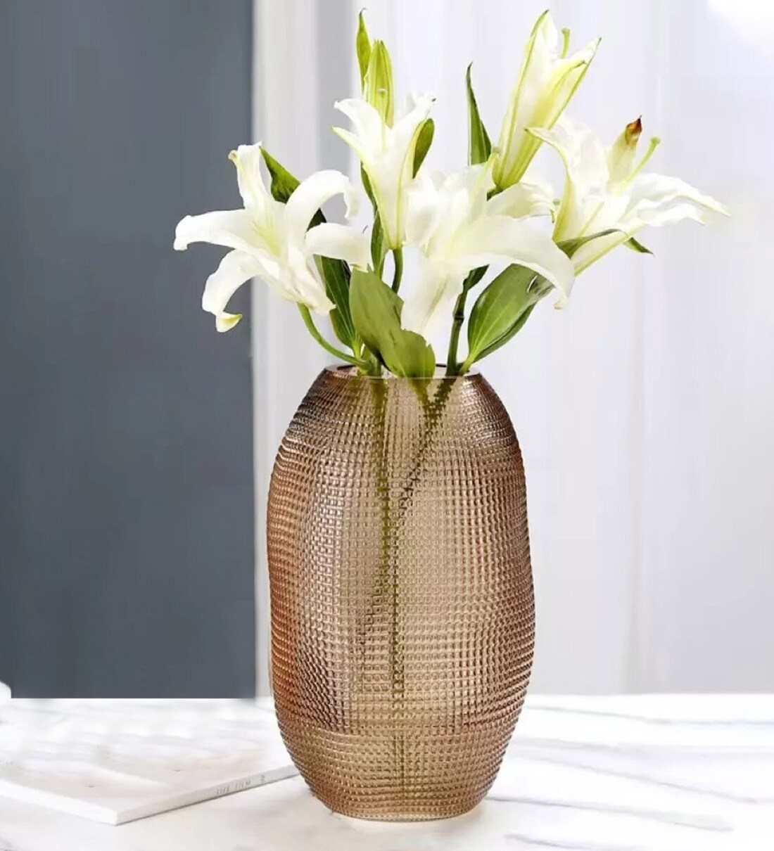 Elevate your living space with these elegant brown glass vases with an eclectic textured finish. A perfect accessory to highlight any corner of your home - decorate your living room or bedroom by adding artificial flowers to these elegant & luxury vases.