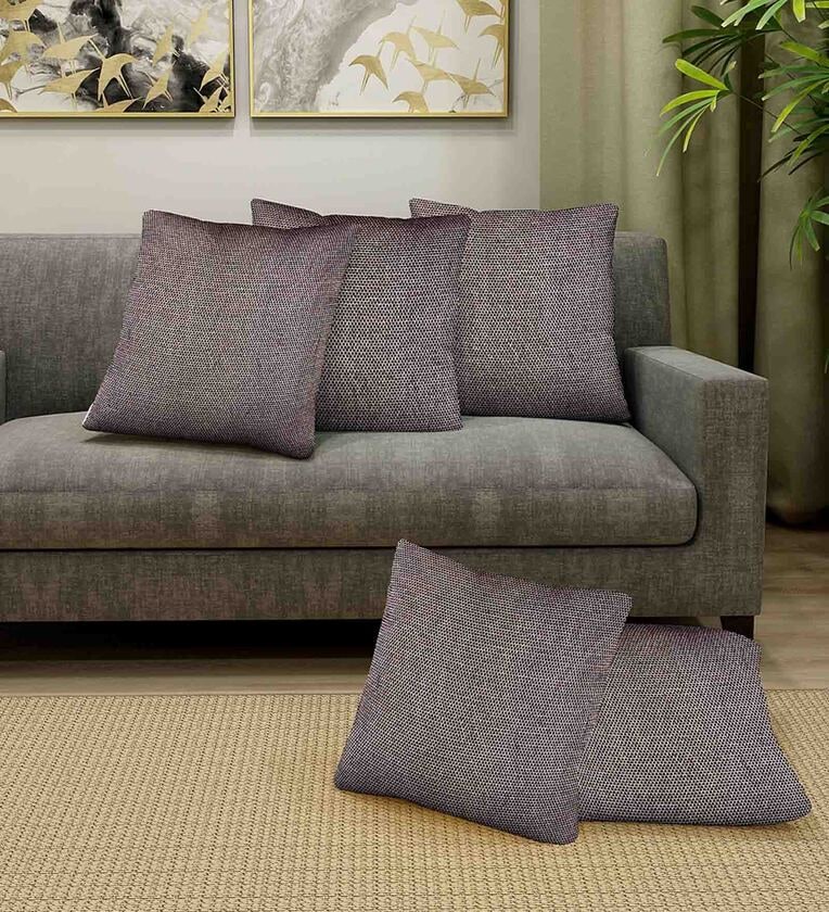 Brown Cotton 12 x 12 inch Set of 5 Cushion Covers